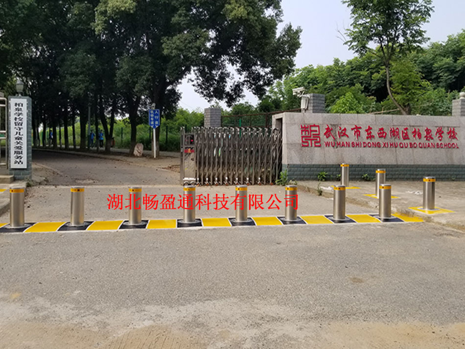 學校進出大門需標配全自動升降柱(一體或分體),一體升降柱是指同一指令控制,所有柱體同升同降。分體升降柱是指可以分開遙控柱體升降,可根據需求單獨升降某根升降柱。