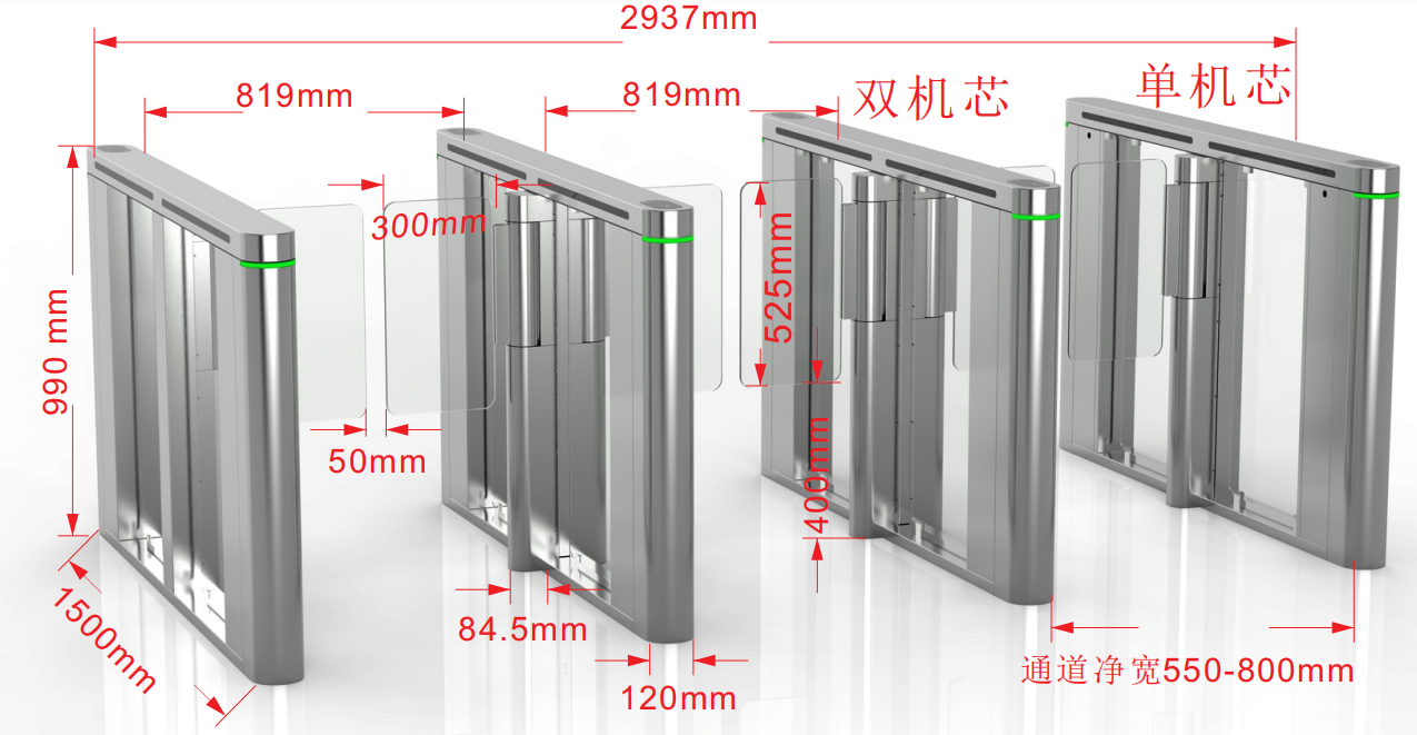 | 刷卡區域 | 刷卡區域:通道兩側采用雙方向內置式讀卡器適配槽 |