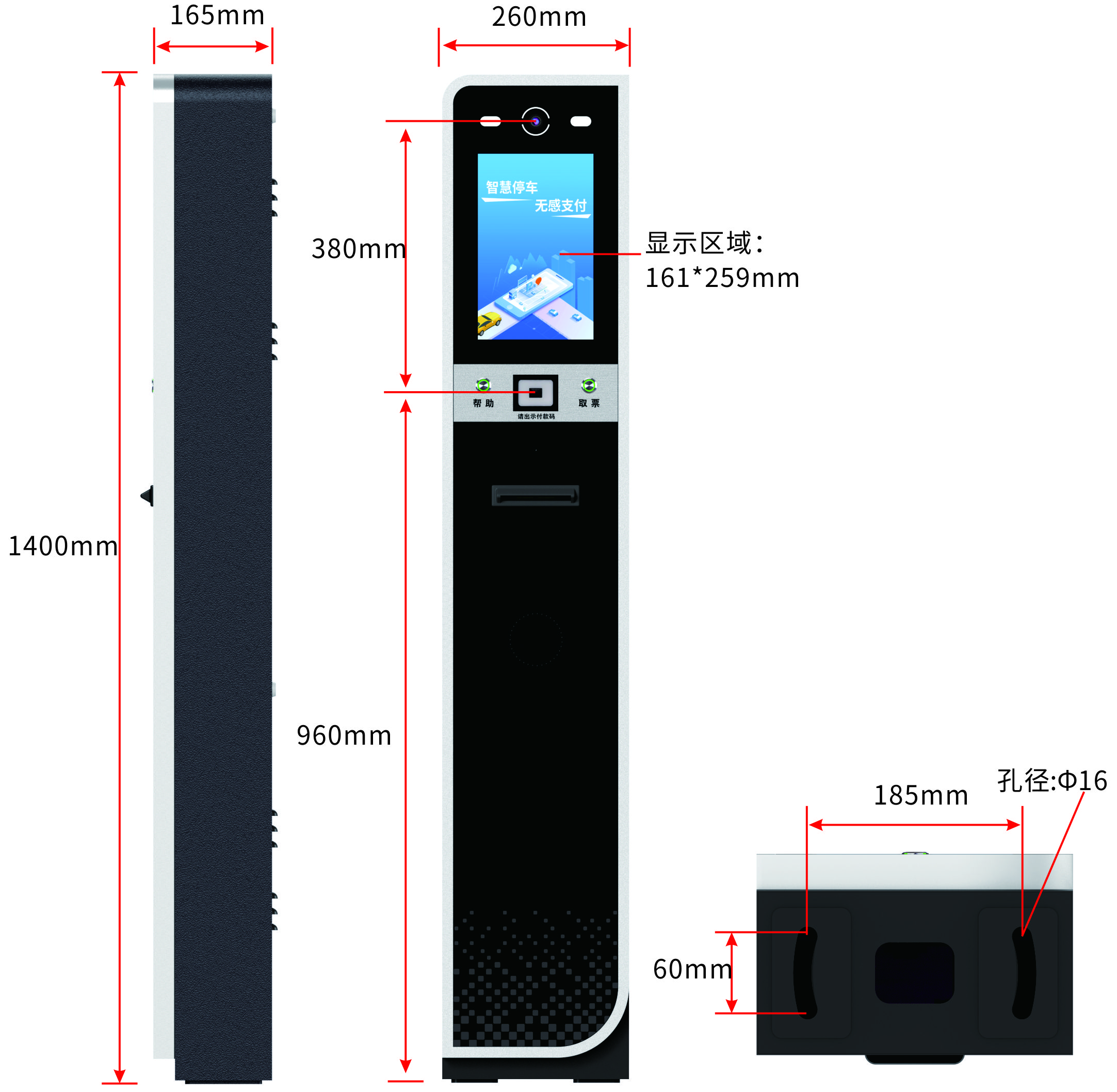 165*260*1400mm(厚*寬*高) |